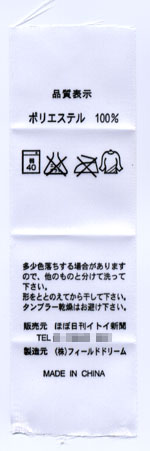 書かれているもので、身ごろの裏側、横の縫い目のところに