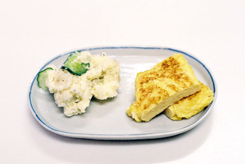 さくっと切って、ポテトサラダと盛ります。 きれいにしすぎなくっても、いいのです。 山盛りじゃないところが、ポイントかも。 ひとりぶんの副菜として、 もうちょっと食べたいなあと思うくらいの、 ちょうどいい量です。