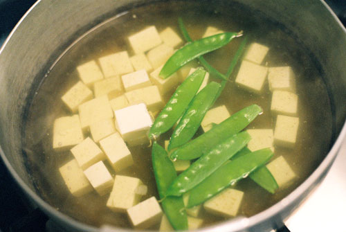 おみそ汁の具は、お豆腐と、きぬさや。