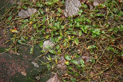 白金台自然教育園前の歩道の植え込みの下一面を、