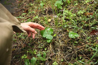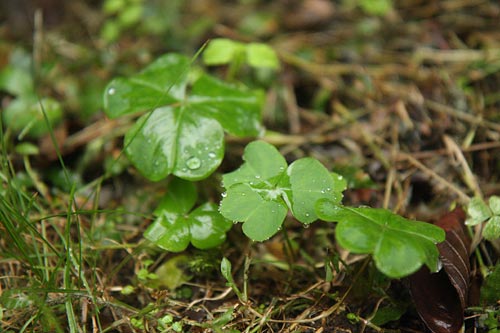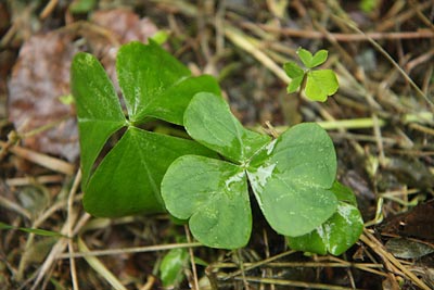 うわ、でかいカタバミがいるぞ、と思ったら、 柳生さんが「これはオキザリスです」と言う。 カタバミの園芸種がどこかの庭から逃げてきたらしい。 置き去り‥‥ 逃げてきた‥‥。 ふたつの言葉に魅了され、そのでかいのをじっくり見た。 すぐそばに、問題物の大きさを現すときに登場する ショートホープみたいにして、 普通のカタバミが生えている。 差は7、8倍あるだろうか。 紫、ピンク、白などの大きな花をつける 観賞用というお嬢さん育ちのこの植物が、 都会のど真ん中の公園まで、 いったいどこら辺りの庭から逃げてきたというのだろう。 家に帰っていつものように『牧野植物大図鑑』を繙くと、 オキザリスはハナカタバミという名前で載っていた。 カタバミ属は7種あり、 すべての種類の頭にOxalis(酸味の意)と 学名が付いていたが、 オキザリスと学名呼びされているのはこれだけだ。 解説に、アフリカ喜望峰原産、 日本には江戸時代末期渡来して九州に帰化した、 というようなことが書かれていたから、 目の前に、丸みを帯びてひろびろと、 あおあおと、きらきらとした大海原が浮かんできた。 旅人なんだなあ、この大っきいのは。 だから温室から逃げ出したくなるのだろうか。 先日伊豆の下田の町を歩いていたら、 花屋の店先に「オキザリス 200円」と書かれた 小さな鉢がびっしり並んでいるのを発見。 細っこい開花寸前のピンク色の花が付いているが、 その葉はどう見ても オキザリスおよびカタバミ属特有のハート形ではない。 しかし店の人の笑顔を見たら問い質せない。 店先で疑心暗鬼にもだえた。 で、証拠写真を撮って柳生さんに送って鑑定してもらった。 回答は、 「これは『オキザリス 桃の輝き』です。 きっと日本で生まれた品種でしょう。 すごく寒さに強く丈夫。 庭に植えるとかってに増えて困るほどかも!」 へえぇ。