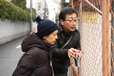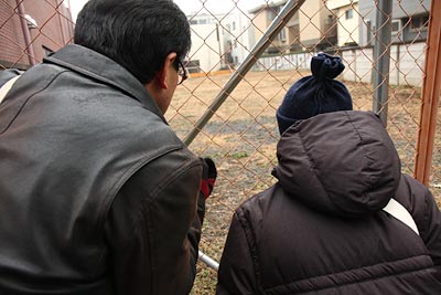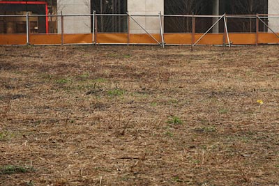 表参道裏通り、冬のみちくさが続いています。 諏訪さんが、空き地のフェンスの前で立ち止まりました。 さて、きょうのみちくさは‥‥。