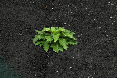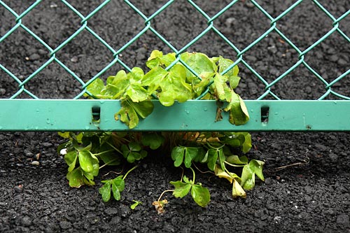 ハート型の葉が夜は閉じ、 片側が欠けているように見えるので “傍食(かたばみ)”と付いたという。 そう聞くとロマンチックな印象だけれど、 なにせカタバミ、庭造りの大敵である。 葉の色や形のやわらかな雰囲気は悪くはないので、 多少であれば歓迎するが、 その繁殖力たるやキリがなくて、 それでどうしても完膚なきまでに抜いてきた。 けれどカタバミ、庭がだめなら他で生きる。 地面以外の居住地は、石垣、道路脇、 窓辺や歩道橋のわずかな土塊までと、範囲が広い。 住まいの善し悪しに文句を言わず、問わず、逆らわず、 根を張り、生き続け、これでもかと草根性を見せつける。 そういうことは重々承知していたものの、 今回、青山陸橋下の、 アスファルトで固め尽くされた立ち入り禁止の空間に、 独りぼっちで根を張っていた1本(1根?)の ムラサキカタバミを見たときは、驚愕した。 分厚いアスファルトを突き破って生えているのだ。 どうしてそんなことができたのか。 どう考えても 空手の人が瓦10枚割るより大変なような気がする。 芽吹きの前にアスファルトが流されたとして、 このひ弱な芽、細い茎、柔らかい葉の どこにそれを突き破る力が潜んでいたのだろう。 植物の底知れぬ力。 神の与えた無言の力。 考えもなくやたら引っこ抜いていた自分が怖ろしい。 遠いのイヤ、狭いのイヤ、汚いのイヤ、と、 身のほど知らずの条件付けて、 住いの可能性を小さく狭めている自分が恥ずかしい。