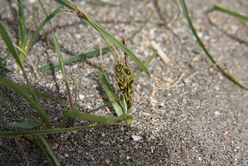 そういえば、 この草は海に行ったとき散々目にしているのだ。 目にするけれど気にしなかったのだ。 浜辺を歩くときはいつも、 何とはなしにつま先で蹴ったり、 砂の熱さ逃れに踏みつけたりしていた。 あるいはその上にピクニックシートを広げ、 荷物を置き、 何人もで 寝転んだり食べたり飲んだりしていた。 今思えば、コウボウシバよ、 苦しかったろう、 ごめんなさい。 この小さな花穂を私はいくつ潰したのか。