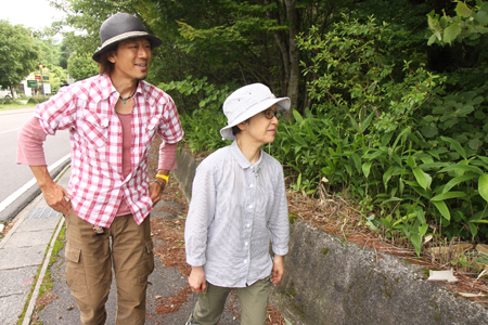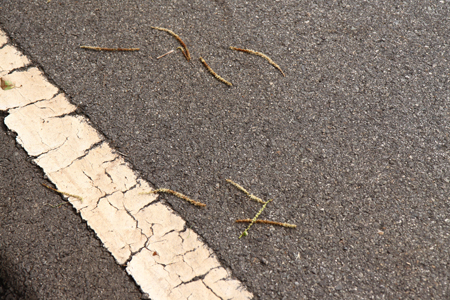 ガードレール円柱脇の、