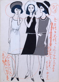 学校のゼミで先生から点数をつけられて、 「75点」とか「足が太いです」とか いろいろ赤字で書かれているような、 もう、そういうのから展示してもらうんです。 ![]() 学生時代の作品(1962〜63年頃) |