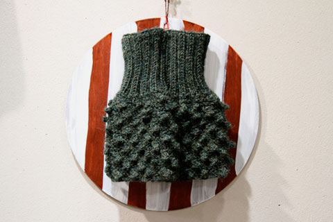 「サンタクロースなんです。 アラン編みという、 隠し絵みたいで気づかれないと残念なので、 |