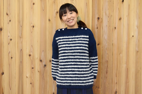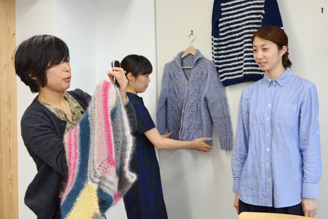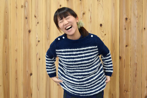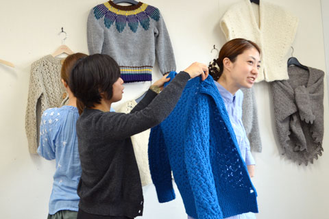 | そうですよね、 ほんとうに岡尾さんはすばらしいです。 でも、モデルさんが決まる前、 毎日わたしがつくるときには、 いつもあの人のことを頭に浮かべながら 編んでいるんですよ。 |