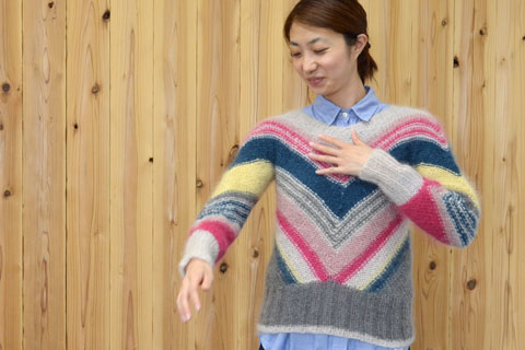 | 今回の中で、 編むのにいちばん時間がかかる作品ですね。 三國さんも編み直したくらいですから。 |