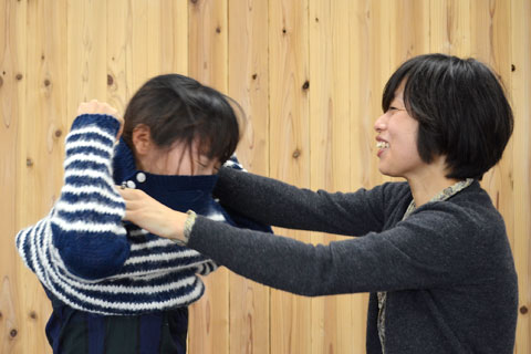 | みちこさんにも‥‥よいしょ(着せてあげる)。 |