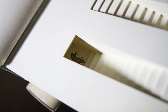 一枚ずつずらしてくり貫かれたページが重なって空間をうみだす。