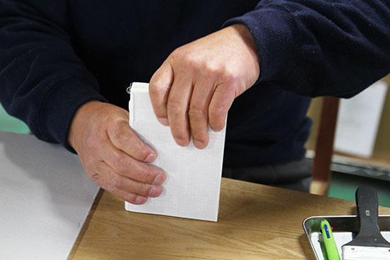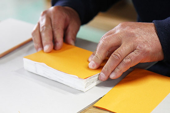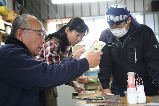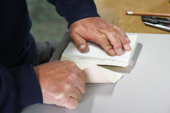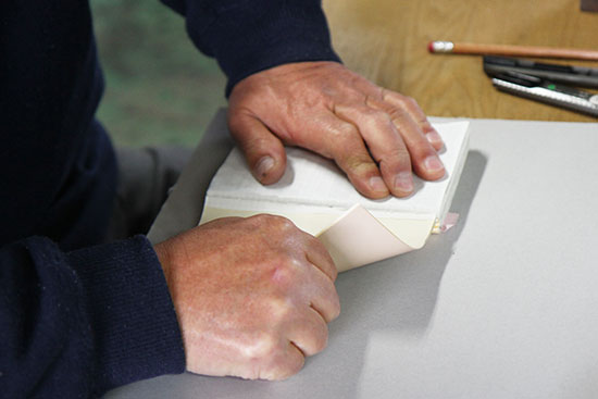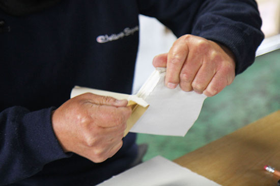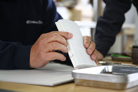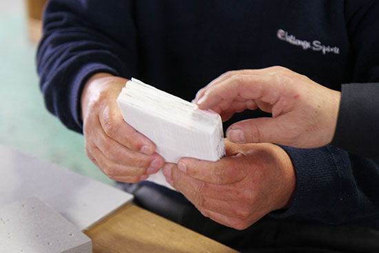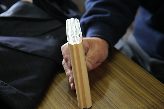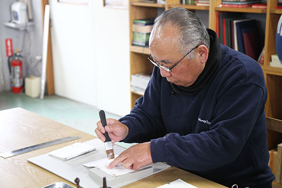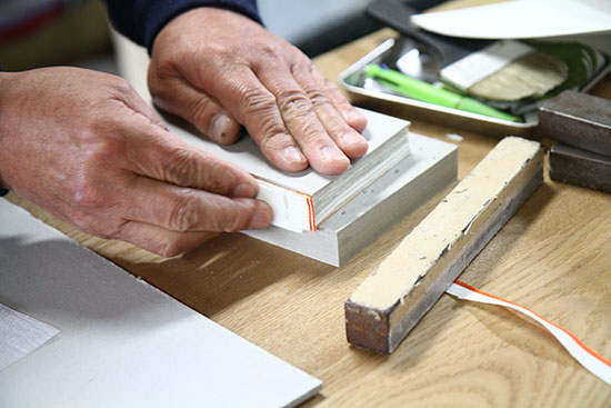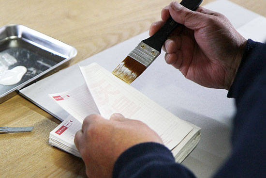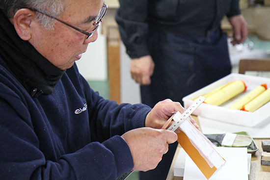 この作業を、美篶堂社長の上島松男さんが担当。