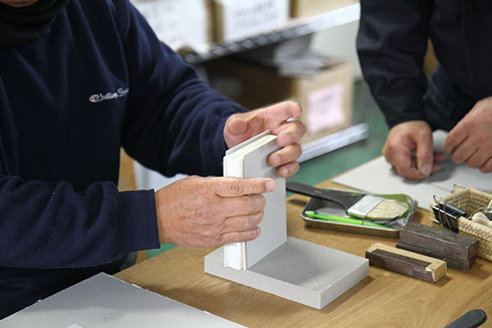 「こういう糊付けは、はみださないよう、