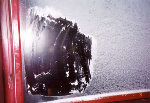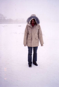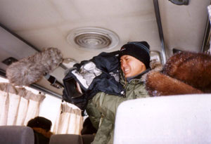 1/8/2002 シベリア鉄道の旅 DAY 13 午後、エカテリンブルグで。 夜中に起きてしまう。 今日はかなり冷え込んでいて、 ー27度くらいらしい。 と、いうことは体感温度は‥‥? おそろしいので考えないことにいたしましょう。 (写真は、凍った列車の窓。 念のため、これ内側です。) 列車の中で、親戚のうちへ旅をした帰りの 2人の姉妹オーリヤ(21)と ウリァーナ(18)に出会う。 オーリヤは絵が好きなデザイナー志望で、 ウリァーナはピアニストで音楽家を目指している。 すごく素直で、素朴な、 しっかりしたお姉さん達という印象。 人と出会っていくという課題に 重いものを感じていたので、 2人に会う時も、正直すごく消極的な自分がいた。 だけれど、話し始めたらウリァーナがリードして 色々聞いてきてくれたので、とても助かる。 この人達の事を本当に知りたい、 という気持ちがどんどん湧いてくる。 明日、2人が市内を案内 &おうちに招待してくれると言う。 「お客さん」に対する考え方が 自分や都会に住んでいる人とは 全く違うのではないかと思う。 お客さんを迎えるという事を真に歓んでいるし、 心からもてなそうという誠意がある。 外から客が来る、ましてや海外から! というのは本当にビッグイベントという感じだ。 自分はお客さんを呼ぶ時に、 あそこまで心の奥底からもてなしたい、 と願っているんだろうか? <おもてなし>それすらも システム化されていないだろうか。 午後、エカテリンブルグに到着。 いよいよ、シベリア地区の最後のストップだ。 (ここは、エリツィン大統領の出身地でもあるらしい。) スヴェルドロフスク駅に着くと、 ウリァーナと「明日9時に、ダムで」という 大ざっぱな(?)約束をして、バイバイ。 エカテリンブルグは案外都会で、 なんだか拍子抜けしてしまう。 今までずっと広大な大地を旅してきたせいで、 都会のビルや、行き交う車にまだ目が慣れていない。 モスクワに近付けば近付くほど近代化してきて、 安心感はあるけれど、 何故だかちょっと不安な気持ち? バスの中でCrewを待っている間、 なにげなく窓を見ていたら、 雪がひと粒ひと粒降ってきて、 ガラスに張り付いて、積ってゆく。 その一つ一つの美しい結晶は溶けず、崩れずに、 形を保ったまま重なっていく。 窓がゆっくりと少しずつ、雪で覆われてゆく。 それをずっと眺めてた。 それは一つの宇宙で、 こんな何気ないものの中だけど、 確実にミクロの中にマクロがあるんだと感じる。 圧倒されてしまう大自然も感動的だけれど、 こういう小さな小さな宇宙に胸うたれてしまう。 <何がリアル?> <何に本当に感動する?> という亊にとても戸惑ってきたけれど、 あぁ自分はこういう取るに足らないように思える ささやかな感動に一番リアリティーを感じるんだな、 となんとなく解ってくる。 バスが動くと、窓についた雪は飛んでいった。 ホテルに着く前に、ある広場で撮影をすることになった。 でもその前にすごくトイレに行きたかったので、 どこか借りれるところを探すと、近くにSUBWAY (地下鉄、ではなくサンドイッチのサブウェイ! ファーストフードのチェーン店があるなんて! 都会〜。)を発見する。 関係ないけれど、これだけ着込んでいて 急いでトイレに行きたい時って‥‥焦る。 スキー場でスキーをはずして 歩きにくいスキーブーツでよたよた歩いて 上下繋がったスキーウェアを脱いで‥‥ というのと似たような面倒くささ。 しかも! この旅、日中はほとんど、 小さなマイクを腰につけている。 それをはずさずにトイレに行くと‥‥ 音響の杉山くんやカメラの樋口さんに <音>が聞こえてしまうという…(汗)。 まだ、そんな失敗はないけれど。 ダムのある広場で散歩、の撮影。 吹雪であまり周りが見えないけれど、 綺麗な建物などがありそうな広場。 しかし、散歩といわれても、吹雪だ。 雪が顔にビュンビュン当たって、 目を開けているのも大変。 ダウンのフードをかぶって 風を防ぎたいところだけど、 撮っているのに顔が見えなくてはしょうがない。 そんなところでインタビューされても、 あまりの寒さに顔が凍り付いて 文字どおり口もまわらないし、 頭も働かなくて大した事は言えないし、 ものすごくもどかしかったが、 やはりどこか甘えている自分にも腹が立った。 カメラが回っていない瞬間があれば、 すぐにフードをかぶり、 全く暖まらないホカロンを ポケットの中で虚しく握りしめ、 たちつくしていたが、そんな瞬間を 名マネージャーに激写されていた‥‥。 こんな情けない自分にカメラを向けないでくれ! と至上最高にふてくされたこの顔‥‥。 (あまりに酷い顔のこの写真、 本当は絶対に人に見せたくないんだけれど‥‥ これこそが極寒の地シベリアでの 坂本美雨のリアルな姿かもと思い、 しかたなく掲載します…。) やっと辿りついたTrans Hotelはとてもとっても綺麗で、 雨宮さんと思わずはしゃぐはしゃぐ。 天井の高いロビーでかなり期待は高まり、 部屋に着くと、とり