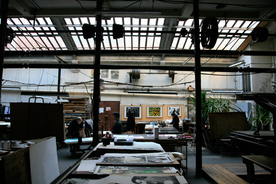安藤モモ子さんが、はじめての石版画に挑戦をしているところです。