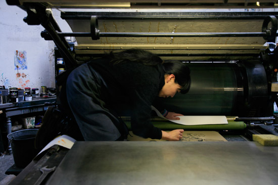乗って、描きます。
