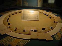 | アメリカモノポリー事情 〜NY、「聖地」アトランティックシティに 行ってきました(3)〜 「最古のモノポリーの巻」 1日目は夕刻NY入りしたこともあって、NYで泊まり、 2日目にアトランティックシティを目指しました。 NYからアトランティックシティに行くには、 モノポリーの権利書にもある「ペンシルバニア鉄道」(!) を利用することもできますが、 バスとあまり変わらない時間にも関わらず、 値段は50〜100ドル程度と、バスよりかなり高いので、 今回はバスで往復しました。 ちなみに私たちが利用したグレイハウンズ社のバスの場合、 アトランティックシティまでの往復が わずか28ドルで済むうえ、 提携カジノホテルから 現金のキャッシュバックがもらえます。 私たちは14ドルをいただきましたので、 往復6時間ほどをわずか14ドルで運んでくれる計算です。 カジノで遊んでくれるからいいよってところでしょうね。 昼過ぎ発のバスを予定していましたので、 午前中はマンハッタンの南にある自由の女神像を観光し、 その後、旅の目的の一つである、 「フォーブスマガジンギャラリー」を見学してきました。 ここは経済雑誌で非常に有名なフォーブス社のオーナーで、 稀代の大金持ちでもある フォーブスさん個人のコレクションを 無料で公開しているものです。 彼のコレクションでは、 1個が数億円する「イースターエッグ」 (その昔、世界一の金持ちであった ロシア帝国ロマノフ王朝の王が 王妃のために毎年のイースター(復活祭)を記念して 贅を尽くして、作らせたタマゴ型の小物入れ。 ダイヤなどがふんだんに使われているのはもちろん、 細工も非常に凝っていて、芸術品である) が有名なのですが、もう一つ有名なのがモノポリー。 フォーブスさんは 「ビジネスの全てをモノポリーで学んだ」と おっしゃるほどのモノポリーフリークでして、 古いモノポリーボードを中心に収集されています。 ここでは、「最古のモノポリー」とされる モノポリーボードを見てきました。 どのモノポリーボードが最古かというのは、 ほんの数年前まで 「チャールズダロウの開発したボード」というのが 定説でした。 しかし、どうもチャールズダロウは 先駆者のゲームを参考にしたのではないかとされ、 版権をもつハズブロ社の調査で、 とある女性の開発したゲームを チャールズダロウが参考にした、 とついに結論付けました。 これは定説を信じてきたモノポラーにとっては 驚天動地の出来事でした。 このギャラリーでは、 なんとチャールズダロウが参考にしたとされる ある女性が開発したゲームのボードも飾られています。 いながらにして最古のモノポリー論争を 振り返ることができるわけですね。 そこで私もにわか歴史家ふうに、 論争を検討してみましょう。 先駆者(女性)の開発したボードをみますと 権利書名に相違があったり、 カラーグループは存在しないものの、 四角形で、角に「刑務所に行け」があるなど、 現在のモノポリーにおける ゲームシステムの一部が垣間見られます。 つまり厳密な意味での「最古のモノポリー」といえます。 ハズブロの見解は間違ってないでしょう。 でも、もう一方のチャールズダロウの作った モノポリーボードは、 土地の名前などがほとんど現在のモノポリーと同じです。 ボードの形はなんと円形!なのですが、 Goマスや刑務所の位置に相違ありません。 ![]() つまり、皆さんが現在遊んでおられる モノポリーのゲームシステムは 間違いなくチャールズダロウが 最初に固めたものといえそうです。 *この最古のモノポリーをめぐる論争は、 海外において高い人気を誇る放送局 「ヒストリーチャンネル」 (日本ではケーブルテレビやスカパーでも)の 「失われた物を探して」シリーズでも 取り上げられています。 |