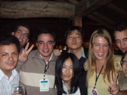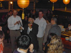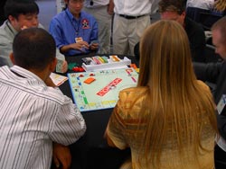 | 世界選手権2004日本大会報告 〜第14回:予選を終えて、参加者の交流〜 こんにちは。 世界選手権の報告もなんと14回目となります。 この連載もいよいろラストスパート、 最後までお付き合いいただきたく存じます。 予選が終了した晩、パーティ会場となった麻布の「権八」。 ブッシュ大統領来日時に首脳の宴席が設けられたことで 有名なこの店で、参加者の懇親会が行われ、 また決勝に進出を決めた予選上位4名の選手が 発表されました。 決勝戦は翌日の午後3時からとのことです。 ![]() 完全にできあがっている参加者達。 翌日の決勝を控えるスペイン代表<左から3番目>と その通訳<左端>の姿が見えるが、 すっかり酔っ払っちゃって大丈夫か!? ポーランド(72点)、スペイン(62点)、 アイルランド(50点)、ノルウェー(50点)です。 全てヨーロッパ勢。 ![]() 決勝進出者を発表するミスターモノポリー ちなみに次点はカナダ(47点)。 以下、欧米諸国の名前が続き、 アジア諸国では10位にかろうじて香港が登場します。 史上初のアジア開催となった世界選手権ですが、 成績の上ではなかなか苦しい結果となりました。 日本のお二人は前回までにお伝えしたように、 「無念の」37位と38位。 その日本勢はその後身内だけでヒルズのバーにて 「残念会」。 ![]() 残念会会場のバー前にて日本勢。 「あと数時間の世界チャンピオン」 岡田さん<左端>は すっかりお手上げのポーズ!? 明けて10月9日。 決勝戦が行われる日となりました。 この日は台風22号の接近が心配されましたが、 それでも空模様を見ながら 今回日本人関係者と親しくなった ウクライナのダリア嬢の希望で 午前中に浅草観光を決行するなど、 相変わらず日本勢はパワフルに行動していました。 ちなみに一行は浅草にてNHKに台風の取材を受けました。 台風にも関わらず 果敢に観光しているのが目立ったみたいです! ![]() ダリア嬢のリクエストにて皆で鮨屋に。 鮨職人の腕さばきに興味津々の ダリア嬢<右から二人目> 次回はゲーム界で世界一といえるほど、 非常に華やかな決勝の舞台を伝えます。 |