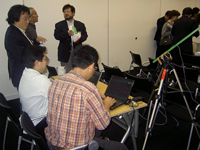 | モノポリー世界選手権 日本代表決定戦報告(その1) こんにちは。 今回は、9月19日に行われた、 モノポリー世界選手権日本代表決定戦の様子を ご報告します。 モノポリー世界選手権は、 このページで何度もご紹介しておりますとおり、 4年に1回、 米国HASBRO社の主催で開催されており、 今回は、初めての日本開催(アジア初)です。 日本からは、 前回トロントでの大会で優勝された岡田豊さんが ディフェンディングチャンピオンとして 招待されていますが、 もう1人、今回の日本代表としての 出場枠をかけてのこの日の戦いです。 会場は、東京・六本木ヒルズ・森タワー49階の 六本木アカデミーヒルズ。 世界選手権も同じくここ 六本木アカデミーヒルズで開催されることになっています。 格調高いエントランスロビーを通って、 会場となる「コラボレーションルーム」へ。 窓からは東京のベイエリアが一望のもとに見渡せる 絶景です。 ここで日本代表の座を争うのは、 2001年度日本チャンピオン植田幹浩さん 2002年度日本チャンピオン井元哲也さん 2003年度日本チャンピオン表寺修さん 2004年度日本チャンピオン篠塚博文さん の4名。 まさに4年に1度しか見られない、 日本最高峰のゲームが展開されることでしょう。 会場には4名の選手がそろい、 主催者の(株)トミーダイレクトの方や、 日本モノポリー協会の運営スタッフ、 マスメディアの取材の方、 そしてこの熱い戦いをこの目で見ようと 集まってきたギャラリー。 徐々に雰囲気が盛り上がってきます。 そしてもうひとつこの日の話題は、 世界選手権の東京開催を記念して発売される予定の モノポリー「六本木ヒルズエディション」の 初お目見えです。 六本木ヒルズ内のエリアや建物、ショップなどが 自分の足でヒルズ内を歩いているように感じられるほど きれいに配置されています。 最近ルイ・ヴィトンとのコラボレーションでも話題になった 世界的なアーティスト 村上隆さんのデザインによるものです。 日本代表決定戦は、なんとこの 発売前の「六本木ヒルズエディション」を使用して 行われることとなりました。 代表決定戦は、3回戦まで行われます。 ポイントのしくみは、 ゲーム終了時の総資産合計を100として、 これに占める各選手の資産の割合がポイントとなる、 シェアポイントシステムと呼ばれるものです。 全資産を独占すれば当然100ポイントになりますが、 モノポリー勝ちにはさらに50ポイントのボーナスがあり、 150ポイントを得ることができます。 また、第3回戦はこれが1.5倍になり、 モノポリー勝ちすれば225ポイントとなります。 ですから、1・2回戦で多少劣勢でも 十分逆転のチャンスが残り、 逆に多少優位に立っても最後まで息を抜けません。 開会式のあと、第1回戦が始まります。 ダイスを振って決まったスタートの順番は 表寺さん、篠塚さん、井元さん、植田さん の順です。 バンカー兼審判は世界チャンピオンの岡田豊さん。 いよいよゲーム開始です。 各選手、順調に権利書を購入していきます。 この段階でまだ優劣はほとんどありません。 序盤はなんとなくお互い牽制しあって 交渉がまとまりにくい雰囲気がありましたが、 徐々に交渉が進み、 篠塚さんが鉄道(六本木ヒルズエディションでは 地下鉄2つのほか、バスとタクシーがありますが、 便宜上鉄道と呼びます)4枚(4RR)、 表寺さんがダークブルー(DB)、 井元さんがライトブルー(LB)、 植田さんは端切れカードとお金をたくさん持って チャンスをうかがう、という形になりました。 ここで井元さんのLBが順調に集客します。 表寺さんはこのLBにつかまり、 DBの経営を本格的に始める前に お金がなくなってしまいました。 満を持して植田さんがこのDBを引き取ります。 表寺さんはレッド(Re)で出直しです。 と思った矢先、表寺さんは自分が渡した植田さんの 森タワー(通常版のボードウォーク)を踏み、 *1400(お金の単位は読み方不明の かわいい花マークなんですが、ここでは*とします。) の支払いで破産。 植田さんはReのセットも手に入れます。 篠塚さんもDBを踏んで破産、 あとは植田さんと井元さんの一騎打ちです。 井元さんはLB以外の追加カラーが なかなか手にはいらなかったのですが、 売れ残っていた最後のオレンジ(Or)を踏み、 自力で強力カラーのOrをそろえました。 しばらくはがっぷり四つの様相でしたが、 井元さん、「森タワーへ行く」のカードを引いて *1400の支払い、体力を失います。 その後Reを2周続けて踏んで、井元さん破産。 第1回戦は植田さんがモノポリー勝ちで制しました。 150ポイントを獲得して、 植田さんが1歩抜け出したかたちです。 1回戦終了後、約1時間の休憩。 ギャラリー達も三々五々、 森タワー49階の六本木アカデミーヒルズから 「下界」へ降りて 六本木ヒルズ内を散策がてら昼食をとりに行きます。 実はこの日のゲームは インターネットで実況中継されていたということを ご存知でしょうか。 WEBカメラからの画像と、 キーボードから打ち込