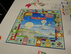 | 「世界選手権日本開催記念 六本木ヒルズ杯モノポリー大会」 (協力:アカデミーヒルズ)の結果報告 (その1) こんにちは。 今回は、11月7日に開催されました、 「世界選手権日本開催記念六本木ヒルズ杯モノポリー大会」 (協力:アカデミーヒルズ)の様子をお伝えします。 このページで何度かご紹介しておりますとおり、 4年に1回のモノポリー世界選手権が、 今年10月に初めて日本で開催されました。 これを記念しての大会です。 世界選手権は一般の方の観戦ができませんでしたので、 このオープンな記念大会で、 少しでも世界選手権の雰囲気を 味わっていただこうというものです。 会場は、アカデミーヒルズさんのご協力で、 六本木ヒルズ森タワー40階の 「六本木アカデミーヒルズ40」。 世界選手権の予選ラウンドが行われた会場と同じ階です。 ![]() ここに、68名の参加者が集まって下さいました。 いわゆる大会常連の方以外の ゲーム経験の浅い方の参加も多くいただき、 小学生のお子さんも何名か。 なごやかな雰囲気のなか オープニングセレモニーが始まります。 特別ゲストに、 世界選手権で優勝されたスペイン代表フェルナンデス氏の 通訳を務められた、左崎ジェイソンさんを迎え、 現世界チャンピオンからいただいた この大会に向けてのメッセージも披露していただきました。 オープニングに引き続いてゲームがはじまります。 大会の方式は、 できるだけ世界選手権に近づけようと、 ・ゲームの人数は1テーブル4名または5名。 ・予選3ゲームでの成績上位4名で決勝戦1ゲーム。 ・予選の成績は世界選手権のポイント方式による。 といった感じです。 使用するボードは、 世界選手権の開催を記念して発売された、 「モノポリー六本木ヒルズバージョン」。 六本木ヒルズ内に実在する有名スポットが、 盤上の各マスに配置されています。 また、そのデザインは、 ルイヴィトンとのコラボレーションでも有名な 村上隆氏によるもの。 ![]() 世界選手権では いわゆるスタンダード版 (米国アトランティックシティ版)が使用されましたが、 ボードだけは「世界選手権と同じ」にこだわらず、 大会の会場そのものが舞台となっている このバージョンを使用しました。 ちなみに、「六本木アカデミーヒルズ」は GOから21マス目のケンタッキー通りの場所、 その六本木アカデミーヒルズのある「森タワー」は 39マス目のボードウォークの場所です。 1回戦、2回戦とも、 各テーブルで熱く楽しいゲームが展開された模様です。 ![]() その後は昼食休憩。 同じ森タワー40階にあるカフェで 都内の絶景を楽しみながら昼食をとった方や、 「六本木ヒルズバージョン」ボードの 8マス目にある「スープストックトーキョー」の おいしいスープを味わった方など、 決して長くない昼食休憩も みなさんこの六本木ヒルズを楽しんでおられたようです。 実際のゲームの上でもなぜか 「スープストックトーキョー」が やたらと繁盛していたといううわさも。(笑) 昼食休憩の後半に、 会場では世界選手権の様子がビデオで放映されました。 豪華な会場ならではの、 備え付けの100インチスクリーン使用です。 この放映が始まるころから参加者のみなさんが 三々五々会場にもどってこられ、 ビデオが終ると、 いよいよ決勝戦進出者を決める第3回戦です。 1、2回戦である程度ポイントを稼いだ人は、 この第3回戦に勝負をかけます。 また、ポイントがあまりとれなくて 決勝戦進出をあきらめた人も 1人のリタイアもなく最後までゲームを楽しみます。 (つづく) |