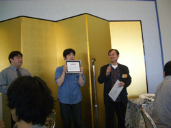 | モノポリー発売70周年記念モノポリー大会結果報告 こんにちは。 今回は2月12日に行われました 「モノポリー発売70周年記念大会」の結果を ご報告いたします。 モノポリーは、1935年米国で発売され、 皆さんのおかげで世界屈指の人気ゲームとなりましたが、 昨年は70周年にあたりました。 その70周年を記念して世界中で 記念版モノポリーが発売されたました。 今回は日本で米国版の 70周年記念モノポリー発売を記念して、 記念大会が開催されました。 96名もの多数のご参加で、 ほぼにち読者のみなさんも多数参加いただき、 本当にありがとうございました。 記念大会といえば、 新しいモノポリー版を使った大会。 そして豪華賞品こそがメインの大会。 筆者も大会そっちのけで!? 真剣に賞品をねらってました。 いつも賞品はほとんどを 抽選でプレゼントとなりますが、 今回は貴重なグッズが多かったので、 希望する賞品をあらかじめ投票してもらって、 投票者から抽選となりました。 これは非常にもりあがりました。 素晴らしい賞品だと人気がありすぎて、 当選確率が下がります。 自分の好みを貫徹するか、 当選確率を考えて、戦略的に動くのか。 非常に悩ましい選択で、 投票寸前まで悩む参加者の姿が多数。 注目を集めたのは、 70周年記念版の豪華木製モノポリー。 重厚さが素晴らしい逸品です。 ![]() また別の意味で注目を集めたのは、 この日のためにわざわざ輸入された、 70年前に発売されたモノポリー、 もちろんホンモノです。 いかにもアンティークな雰囲気が漂い、 モノポリーファンならぜひ欲しいものですね。 ![]() これ以外にも、 目もくらまん限りの豪華賞品てんこもりで、 特にモノポリーの歴史を感じされる、 懐かしいグッズの数々は見ているだけで楽しいものでした。 私は残念ながら希望賞品をもらえませんでしたが、 希望されたゲットされたみなさん、 本当におめでとうございました! 個人的にはいまなおちょっと悔しいですが。 おっと、筆者も豪華賞品に目を奪われてしまい、 モノポリー大会が開催されたのを忘 れてしまうところでした。 大会は予選2ゲームで、 2ゲーム計の成績上位が2つの決勝卓で競います。 もちろん、優勝者が2人というわけではございません。 今回はこの2つの卓のうち、 早くモノポリー勝ちした方が優勝。 なんとモノポリー決着時間こそ重要な決勝です。 予選上位9人が決勝に進みますが、 上位4人がA卓へ、下位5人がB卓へ。 人数が少ないA卓は その他にもいろいろゲームが 早く終わりそうな有利な条件が重なって、 決勝開始前はA卓から優勝者が生まれる、 というのが外野の「ヨミ」。 でも優勝者はB卓から。 なんと30分ちょっとでモノポリー決着でした。 わからないものです。 優勝された松島さんは、 ご本人には申し訳ないのですが、 奥様が名人に輝くなど、 いつもは奥様の方が モノポリーの大会で目立ってました。 しかし本日は、旦那さんの方がもちろん目立ってました。 松島さんは予選2ゲーム目で、 2000年世界チャンピオンと激突。 世界チャンピオン圧倒的優勢のゲームを逆転して、 決勝進出。 その勢いが決勝まで残っていたようですね。 本当におめでとうございました。 ![]() (中:優勝を喜ぶ松島さん) なお大会結果の詳細は、 協会大会の結果をいつも掲載いただいている 99年の日本チャンピオン 宮野さんのHP(こちらです)でご確認下さい。 もちろん過去の大会の結果も見れますよ。 |