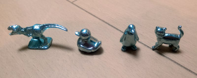 新旧の駒を遊び比べてみませんか? 〜新トークン記念大会(9/3)と モノポリーナイト東京(8/26)のご案内〜 こんにちは。 以下の画像は数年前まで実際に売られていた アトランティックシティ版の駒10個です。 (アトランティックシティはニューヨークの隣、 アメリカ・ニュージャージー州にある モノポリー発祥の地です) 一般的なユーザーの方々にとって 最もなじみのある組み合わせではないでしょうか。 ![]() ▲左上から「手押し車」「帽子」「馬」「靴」「大砲」 左下から「指ぬき」「車」「軍艦」「犬」「アイロン」 そして、今売られているアトランティック版の駒は、 このうち大砲と馬がリストラされたものとなっています。 さらに、以前ここの記事に書きまして大反響を呼びました 最初のウェブ人気投票による「駒の入れ替え総選挙」で、 旧来の駒のうち最も支持されなかった「アイロン」が リストラされ、新しい候補の中で最も支持された 「猫」が新たにラインアップに加わりました。 その後、この春にここで紹介いたしましたように、 ユーザーの投票で長年親しまれた駒のうち、 不人気であった「指ぬき」「靴」「軍艦」がリストラされ、 新駒候補の中で人気のあった 「ティラノサウルス」「ラバーダック」「ペンギン」に 変わることになりました。 その3つに「猫」を加えたものが以下になります。 ![]() ▲左から「ティラノサウルス」「ラバーダック」「ペンギン」「猫」 モノポリーの歴史上、 駒は何度か入れ替わることがありましたが、 ここまで大胆に入れ替わったことは なかったように思います。 これで、発売当初から残っている駒は 「車」「軍艦」「帽子」だけとなりました。 それにしても動物シリーズは本当に人気ですね。 今回新しく入った駒は全て動物関係です。 この駒の総選挙シリーズが今後も続くなら、 私こと岡田@2000年世界チャンピオンがいつも選んでいて、 米国で一番人気とされる「車」でさえ安泰ではなく、 いずれ駒は全て動物シリーズに変わってしまいそうです! 新トークン(駒)記念モノポリー大会では、 新トークンの入ったアトランティック版モノポリーが 日本でもいずれ発売されるのを記念して、 新トークンを使って遊ぶことができるイベントです。 しかも、今回のイベントでは 旧トークンでも遊べることができます! 重要なことは、日本モノポリー協会主催のイベントで、 「アイロン」「指ぬき」「靴」「軍艦」で遊べるのは 最後になります。 (自分で持参されるなら今後も使えます) 「アイロン」「指ぬき」「靴」「軍艦」愛好家の皆さん、 この機会をお見逃しなく! また、ドリンクを楽しみながらモノポリーを遊ぶ ビギナー向けイベント、「モノポリーナイト東京」 (8/26、東京・日本橋三越本店)でも、 新旧のトークンを1セット持参いたします。 希望される方はぜひ遊び比べてくださいね。 このモノポリーナイトでは、 日本を代表するベテランプレーヤーが、 ルールもテクニックも教えてくれます。 ルールをご存じない方でも大丈夫ですよ。 また、数に限りがありますが、 初参加者にはご家族で一つ、 大河版モノポリーをプレゼント! モノポリーナイトは事前申し込みの必要がありませんので、 ぜひ気楽にご参加ください!! ------------------------------------------------------ ●新トークン記念モノポリー大会 日時:9月3日(日)10時30分受付終了〜17時終了 場所:きゅりあん 7F イベントホール JR・東急・りんかい線大井町駅からすぐ 参加費:一般3000円、大学生1000円 ・モノポリー協会のイベント初参加者の方は無料! ・高校生以下の方は、初参加でなくても無料です! ・モノポリー講習会(東京・大森)に参加される方は無料! ------------------------------------------------------ ●モノポリーナイト(東京) 日時:8月26日(土)16時30分〜19時30分 場所:日本橋三越本店 本館7階 Hajimarino cafe(はじまりのカフェ) JR東京駅から徒歩5分くらい 地下鉄日本橋駅・三越前駅直結 参加費:2160円(ソフトドリンク1杯付きです) ・初参加者の方は半額の1080円! かつ、大河版モノポリーをご家族に一つ、プレゼント! (数に限りがありますので先着順となります) ・高校生以下の方は、初参加でなくても無料! ・モノポリー講習会(東京・大森)に参加される方は無料! ------------------------------------------------------ ※新トークン記念やモノポリーナイトの詳細はこちら」 ○「モノポリーライト・ナイト」は毎月1回程度、 東京圏で開催する予定です。 また、大阪圏では不定期開催です。 (文章:日本モノポリー協会専務理事・ 2000年モノポリー世界チャンピオン 岡田豊) |