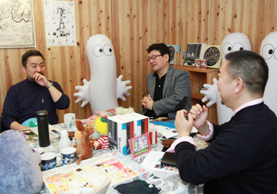 | 重松 | でね、ムーミンもそうだし、 猫十字社っていう漫画家の 『小さなお茶会』もそうだけど、 お父さんが作家だっていう設定のまんが、 俺、大好きなんだ。 自分が作家だから(笑)。 |