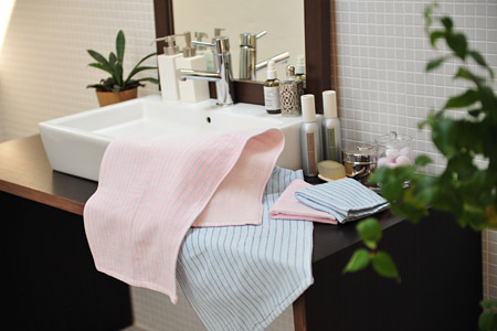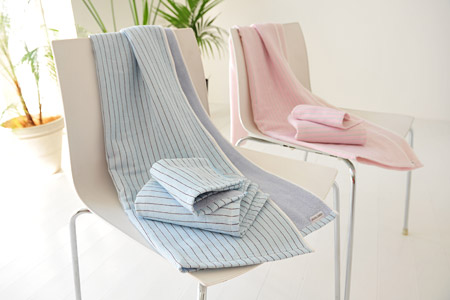 撮影で「ピンストライプ」のハンドタオルを
