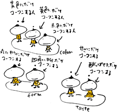 赤い色に興奮する細胞、丸い形に興奮する細胞、