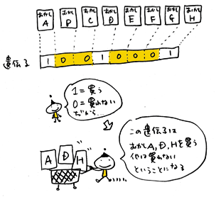 塩基に相当するものは2種類の数字、<0,1>になります。
