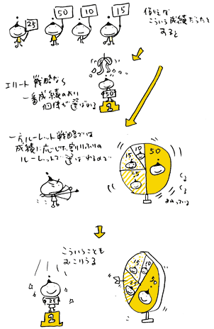 成績とは、上の「遠足のお菓子問題」で言えば、