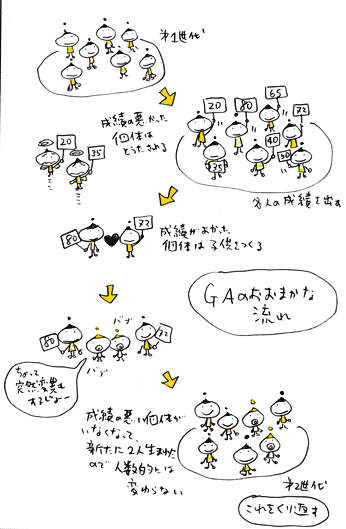 各個体(=遺伝子)の「成績」をどうはじきだすかは、