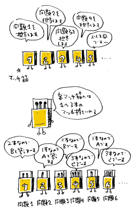 一番左のマッチ箱は、第1問に対する解答を意味します。