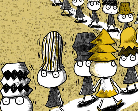 ボクは、心配になって、行列の様子を見に行くことにしました。