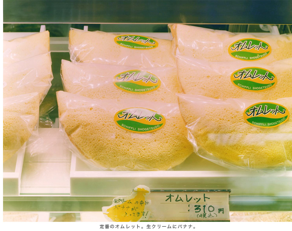 半分に折り重ねたフランスの洋菓子、オムレット。