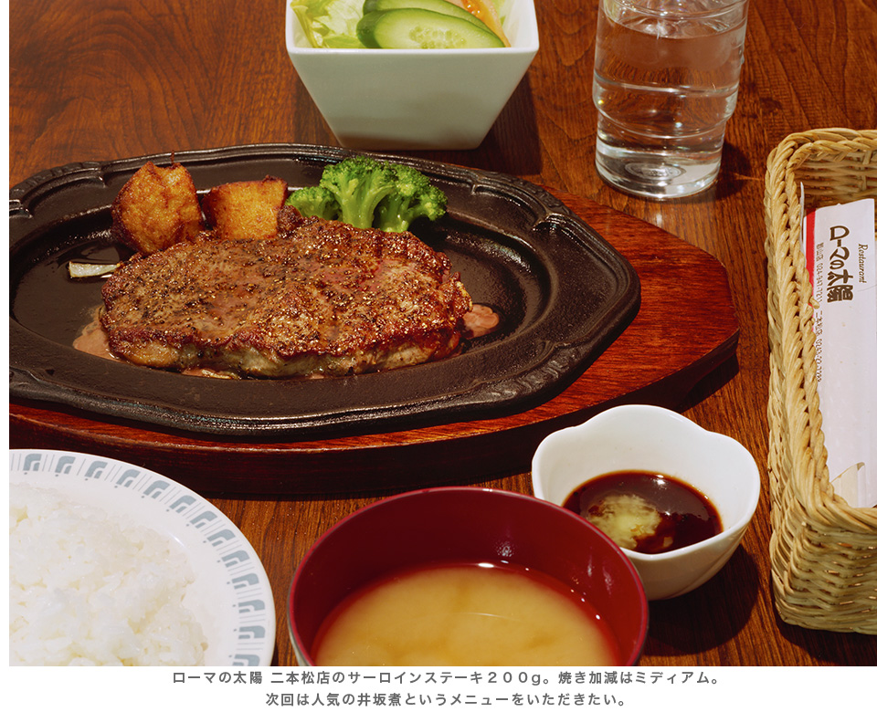 鉄のステーキ皿に乗せられたサーロインステーキが