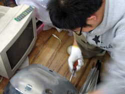 破棄するマシンからメモリを抜く佐藤。