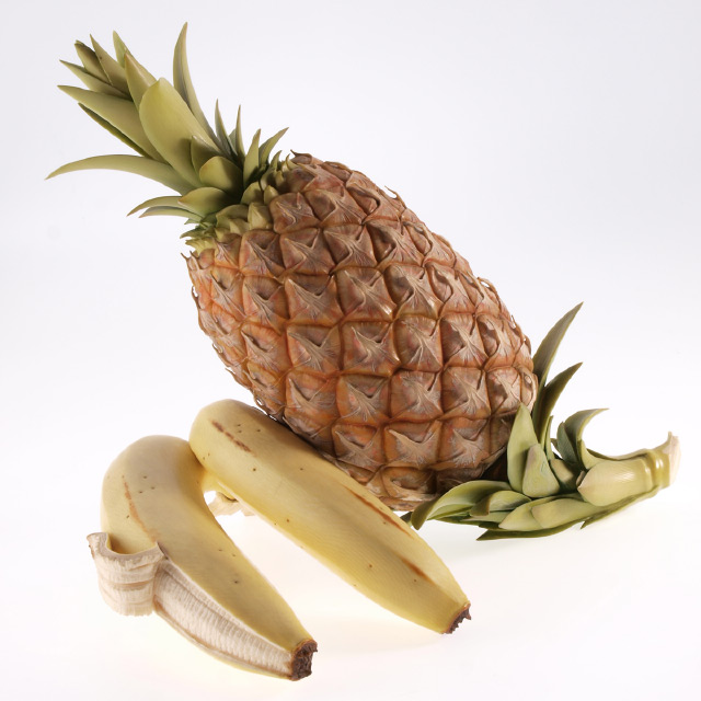 安藤緑山《パイナップル、バナナ》 写真提供:清水三年坂美術館 撮影:木村羊