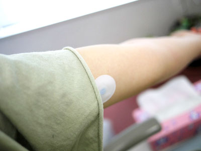 二の腕の内側に貼る「RDテスト・昭和」。 |