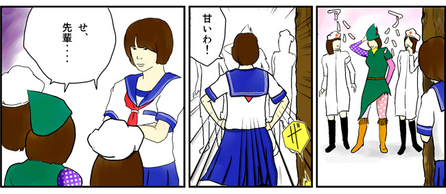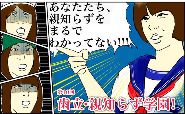 親知らずな先輩(みちこ) 数カ月前、親知らずを抜く際に 読者まで巻き込んで大騒ぎした結果、 親知らずについては やたらと先輩風を吹かすようになる。