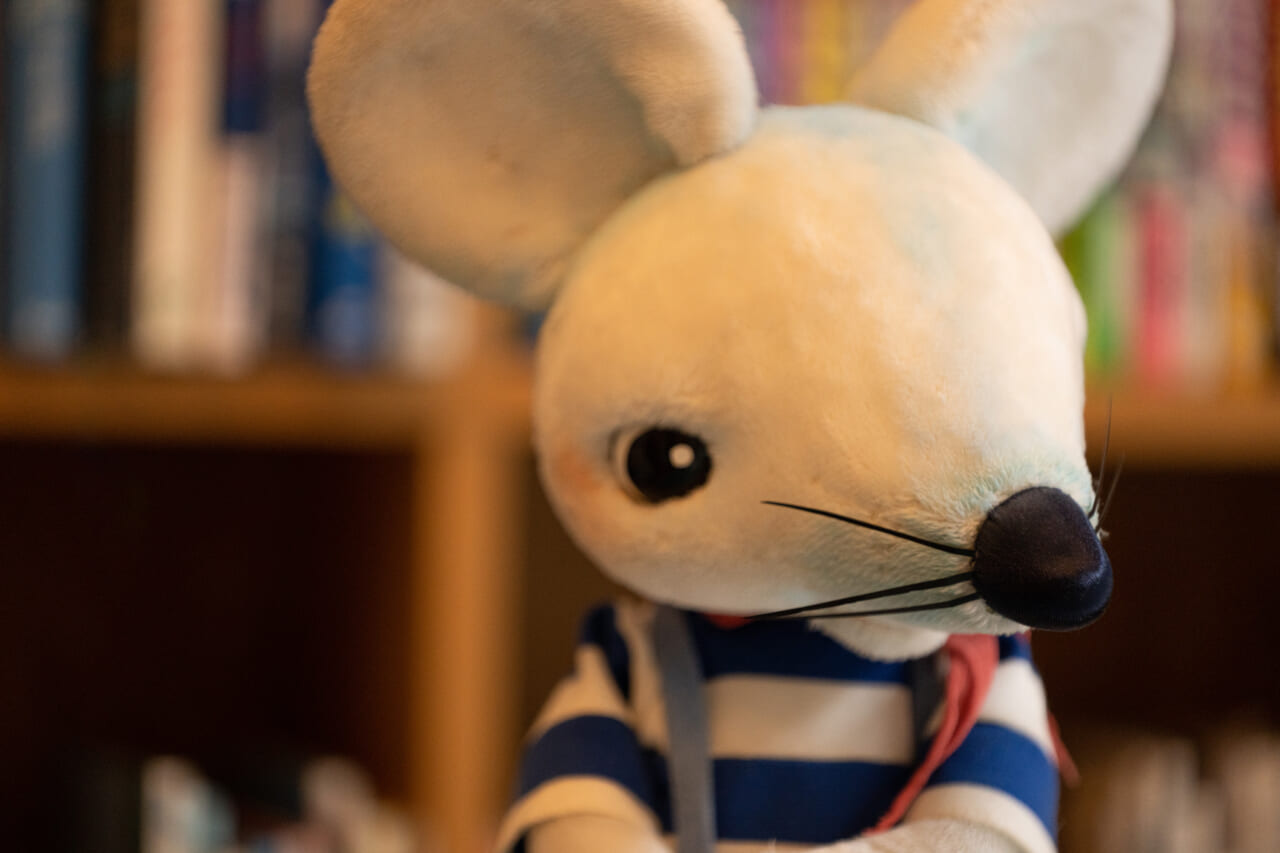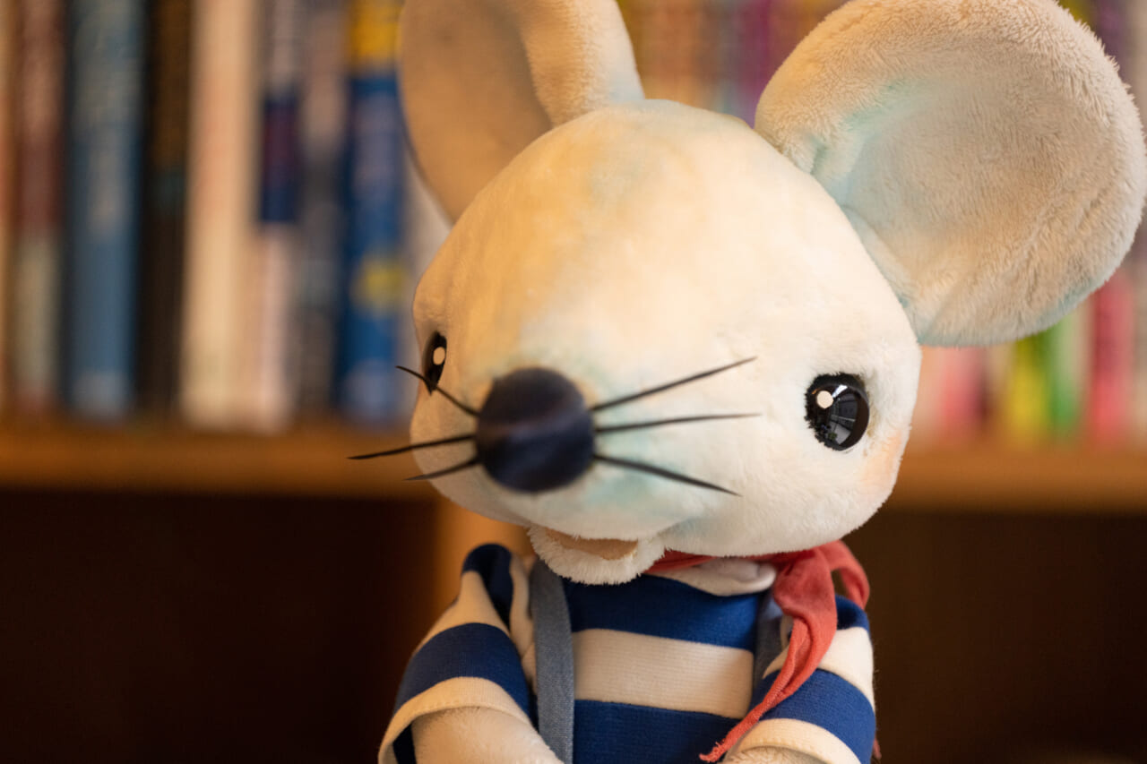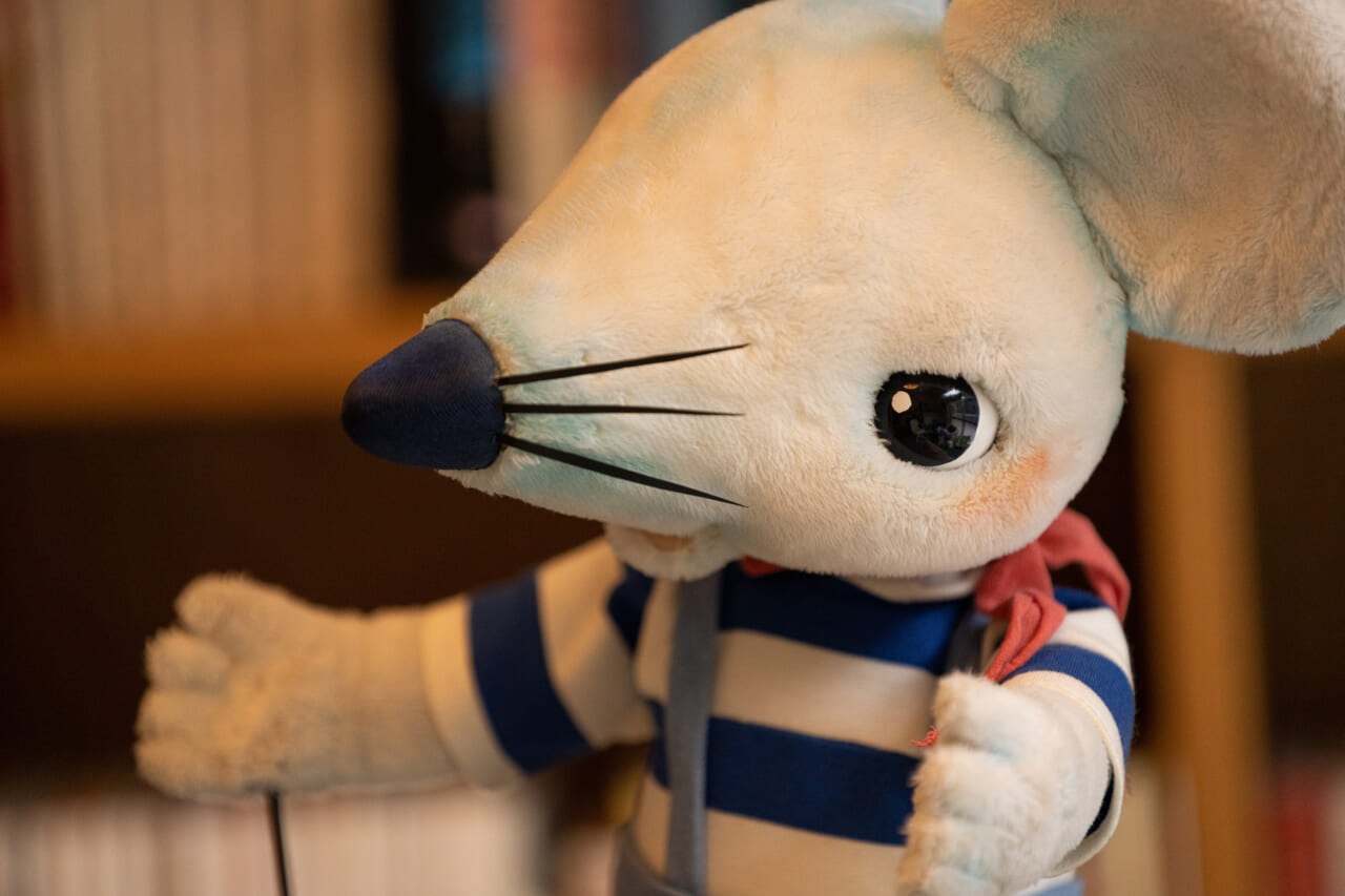 ねずみのシーモア イラストレーターの福田利之さんがデザインした、本棚に住んでいるねずみ。チーズが大好き。