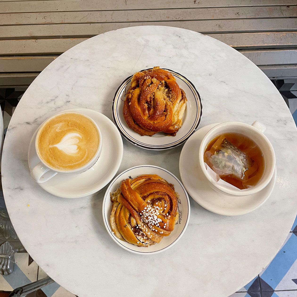 シナモンロールとくるみ入りカルダモンロールを頼んで朝食。