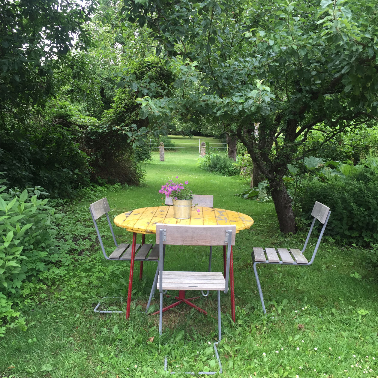 夏は必ず自宅に招いてくれます。 - 庭にあるリンゴの木の下でディナーをいただきながら、