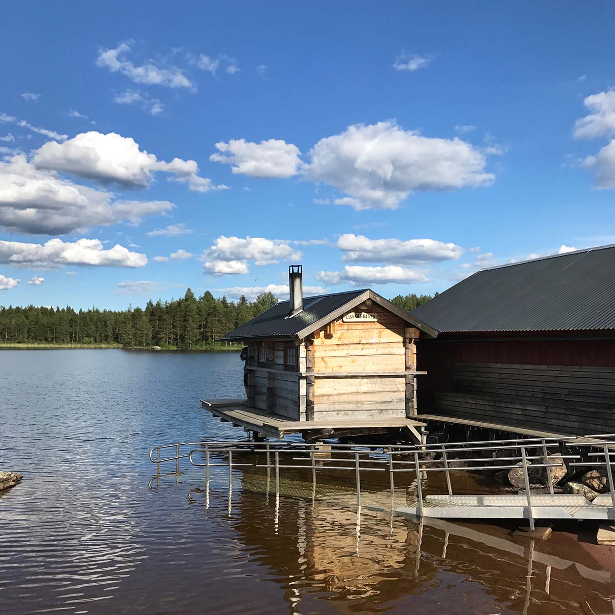 - ここはサウナから直接冷たい湖に飛び込めるから、