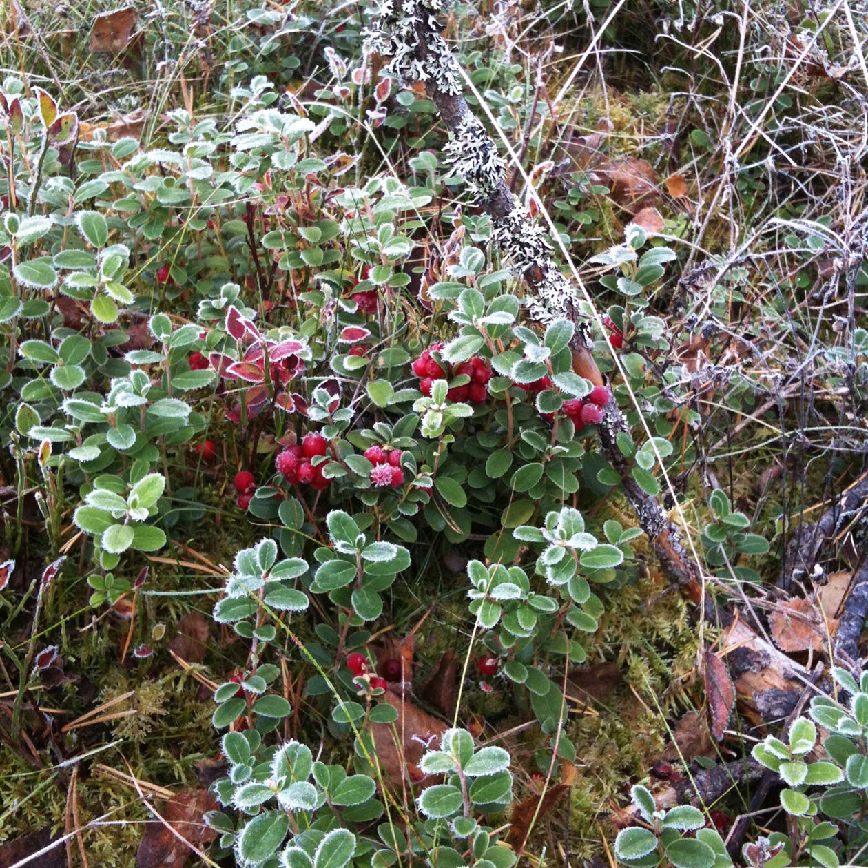 - リンゴンベリーも、霜が降りるとまた違った印象。