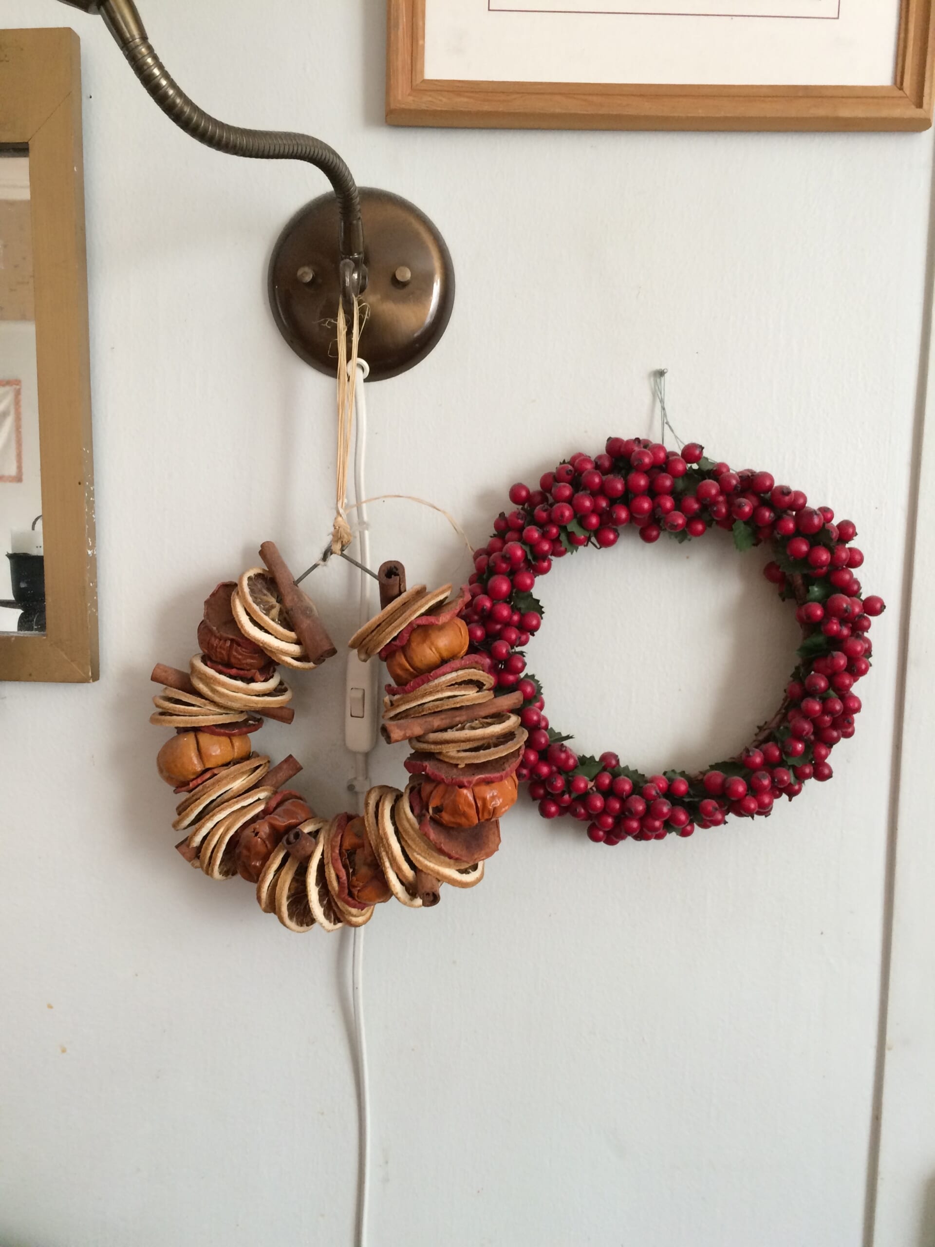 - 赤い実だけのリースとオレンジをスライスしたリース?