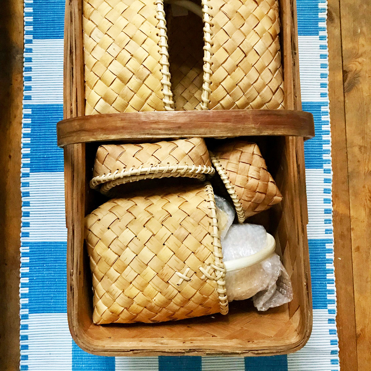 いい感じに収まる。 - でもまだ白樺のカゴの中にも何か入れられる。