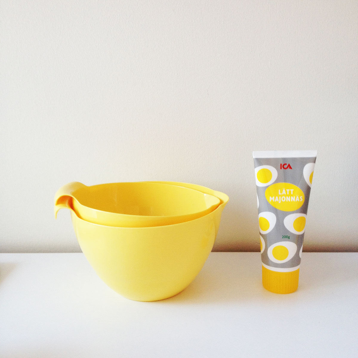 ミキシングボウルと並んでいるのは、マヨネーズ。