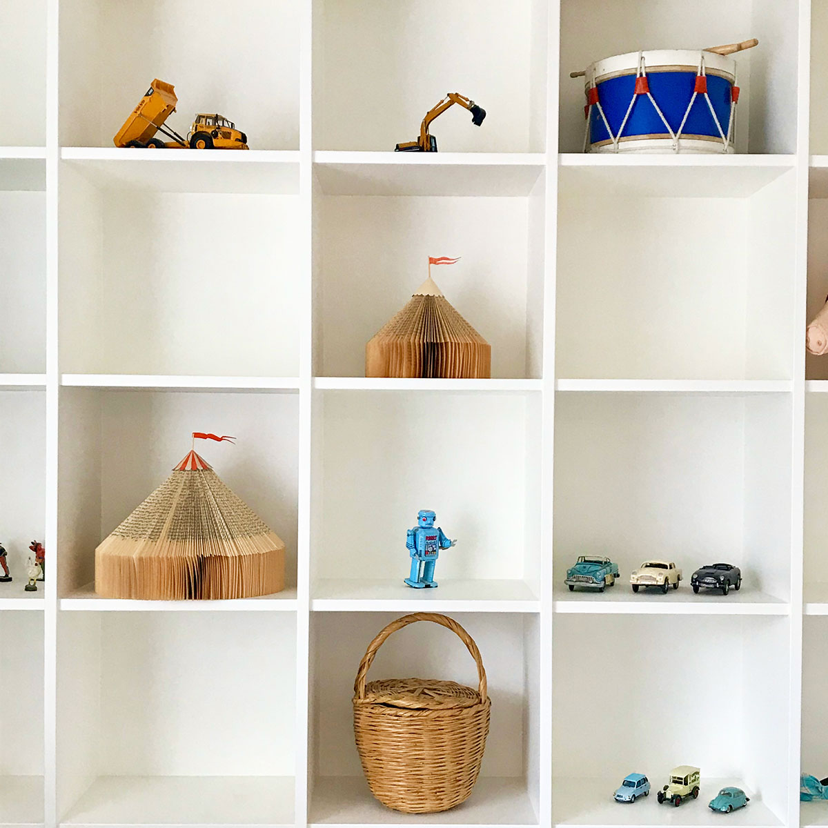 ミニカーを斜めに置いているのも