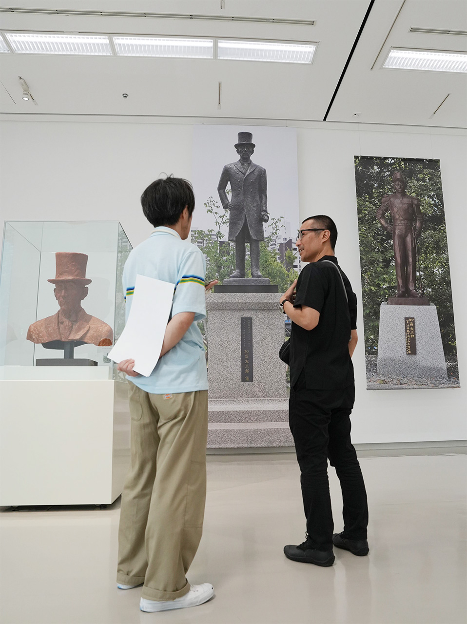 軍服姿でキリッとしてる。 - この銅像って、いまでもあるんですか。